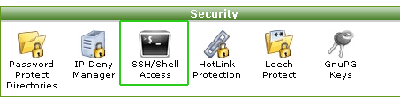 Hostmonster虚拟主机对国内的用户来说是比较熟悉的,这应该得益于Hostmonster很早就提供了支持中文的管理控制面板(cPanel)。另外一个好处就是 Hostmonster支持SSH,对于Linux用户来说,使用SSH会觉得非常亲切。在Hostmonster管理控制面板(cPanel)的安全部分(Security),你可以看到SSH/Shell Access工具。